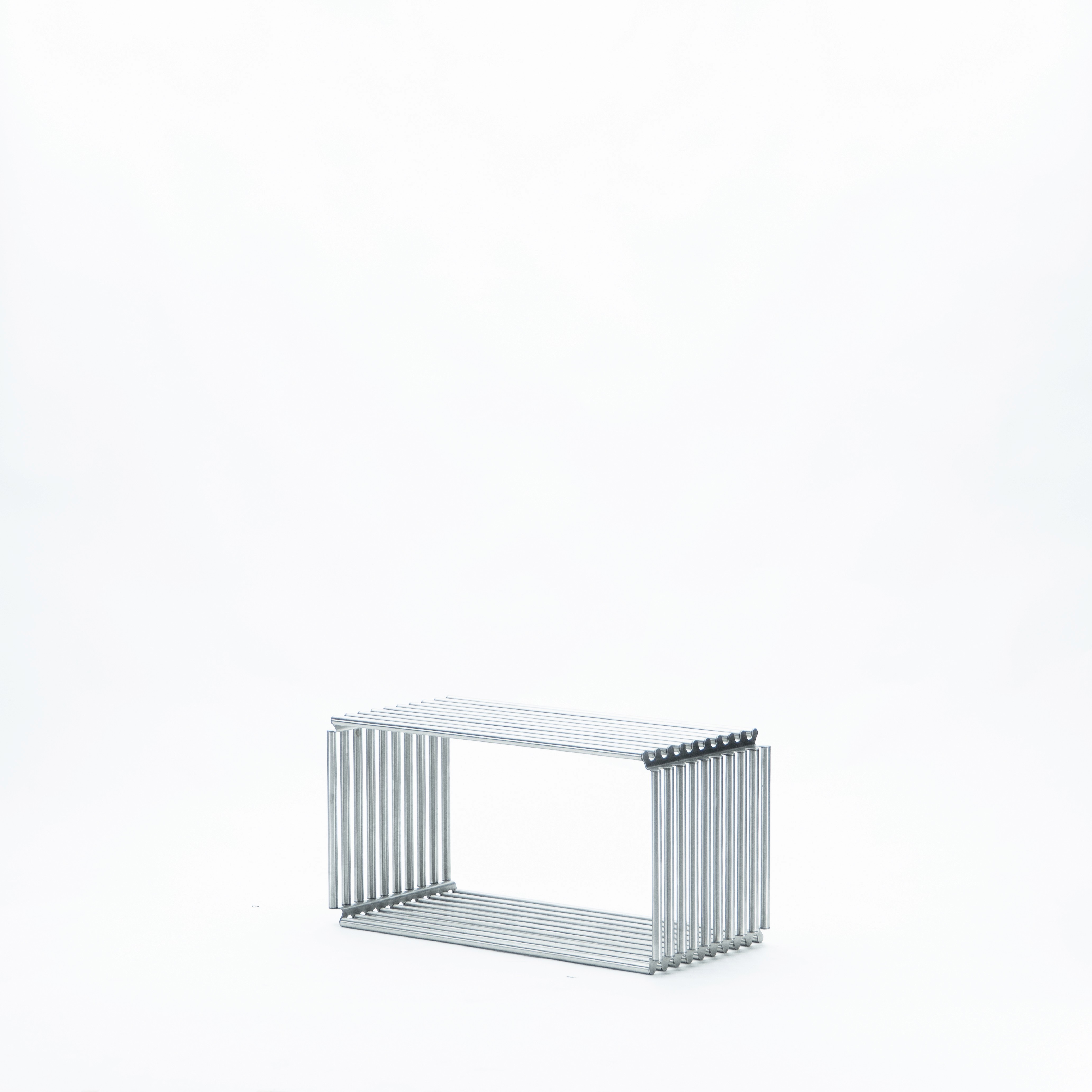 MODULAR STORAGE SYSTEM MADE OF STAINLESS STEEL, COMPOSED OF TWO MODULE SIZES.