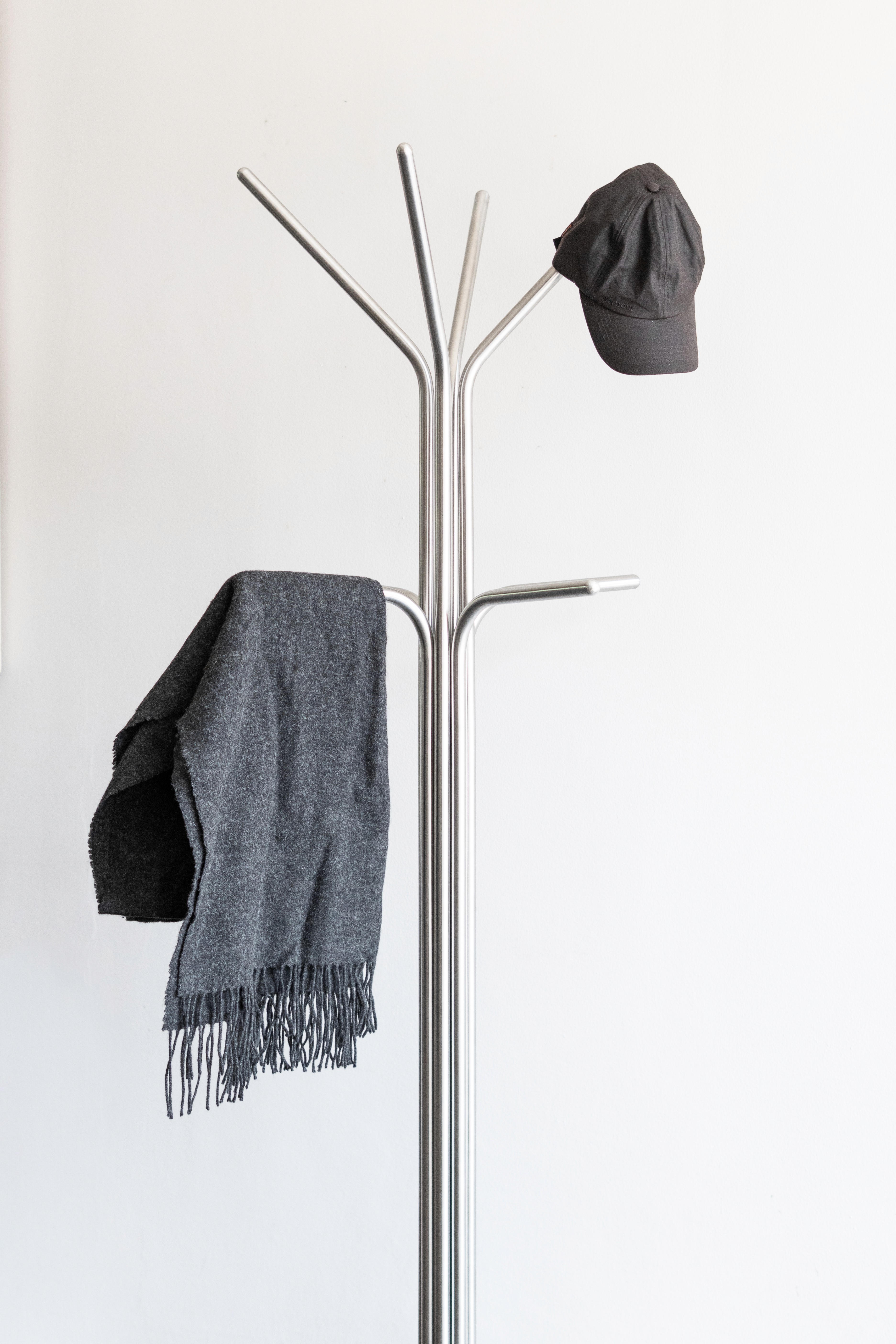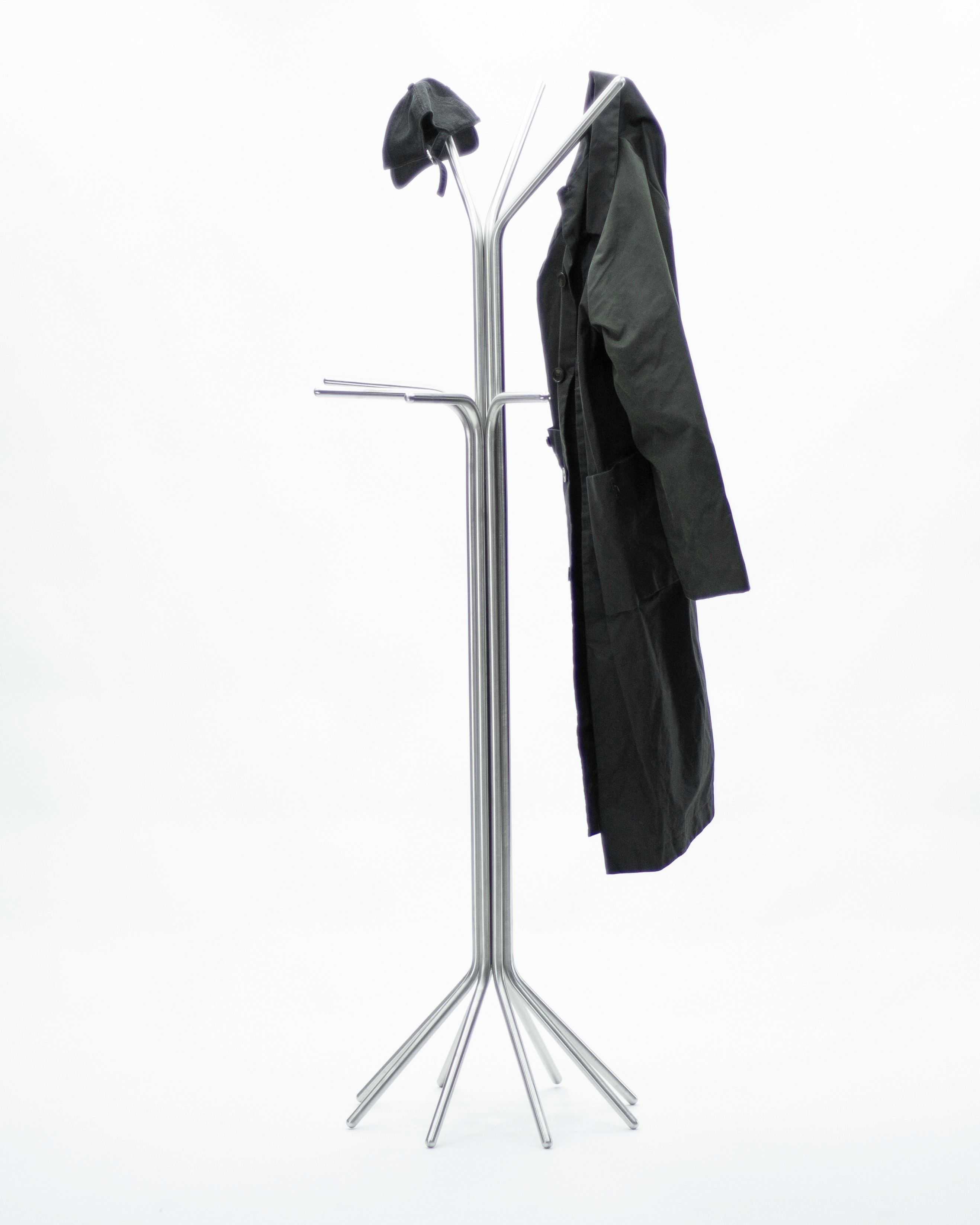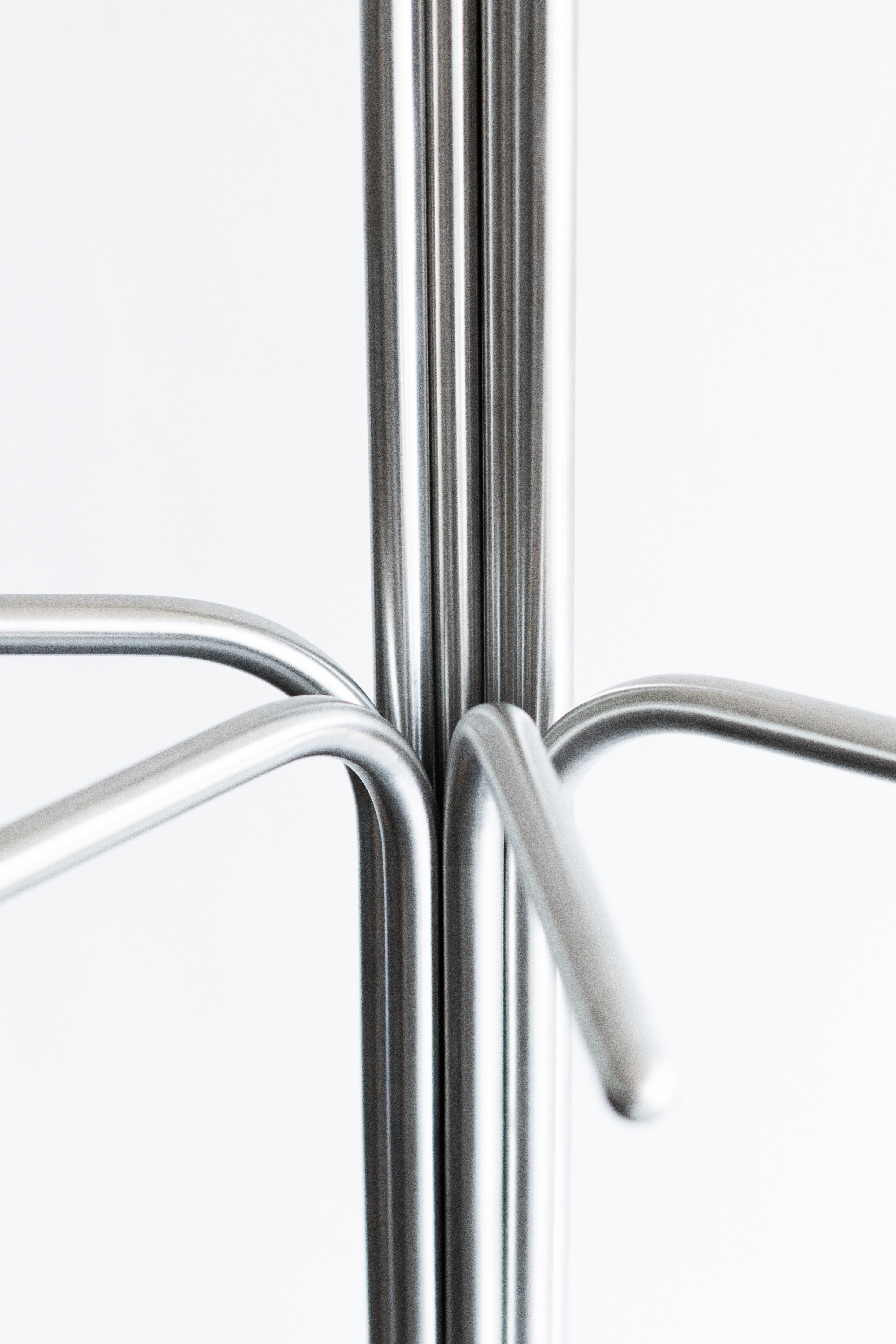 STRAW IS A MODULAR ORGANIZER AND STAND. ITS INTERNAL SYSTEM ALLOWS FOR SCREWLESS ASSEMBLY, KEEPING ALL FIXINGS HIDDEN AND CREATING SMOOTH, CLEAN TUBE SURFACES. IT FEATURES EIGHT SLOTS WHERE YOU CAN PLACE EITHER 45° LARGE TUBES OR 90° SMALL TUBES, ALLOWING FOR MANY POSSIBLE CONFIGURATIONS BASED ON THE USER’S NEEDS AND PREFERENCES. THE SPHERICAL ENDS HELP PROTECT BOTH GARMENTS AND FLOORS.